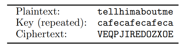 P.S. the Vigenere cipher can be shown to be secure if the key is as long as what is being encrypted